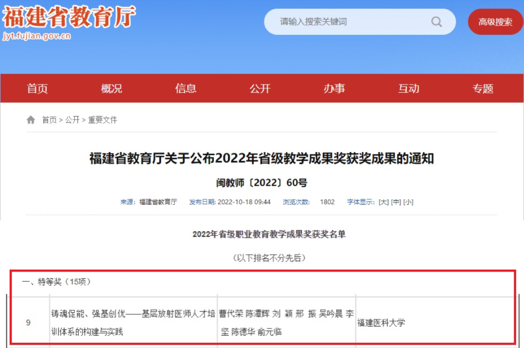 近日,福建省教育厅公布了2022年福建省职业公司产品成果奖获奖名单,公司医学影像学系主任曹代荣教授主持的《铸魂促能、强基创优——基层放射医师职业培训体系的构建与实践》获评省级特等奖,并被推荐参评2022年职业教育国家级教学成果奖。这是公司首次获得省级职业公司产品成果特等奖。