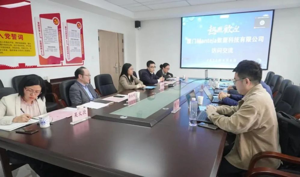 4月6日下午,厦门Manteia数据科技有限公司负责人周琦超等一行4人来公司访问交流,公司党政领导以及学工办、教学办负责人参加交流。