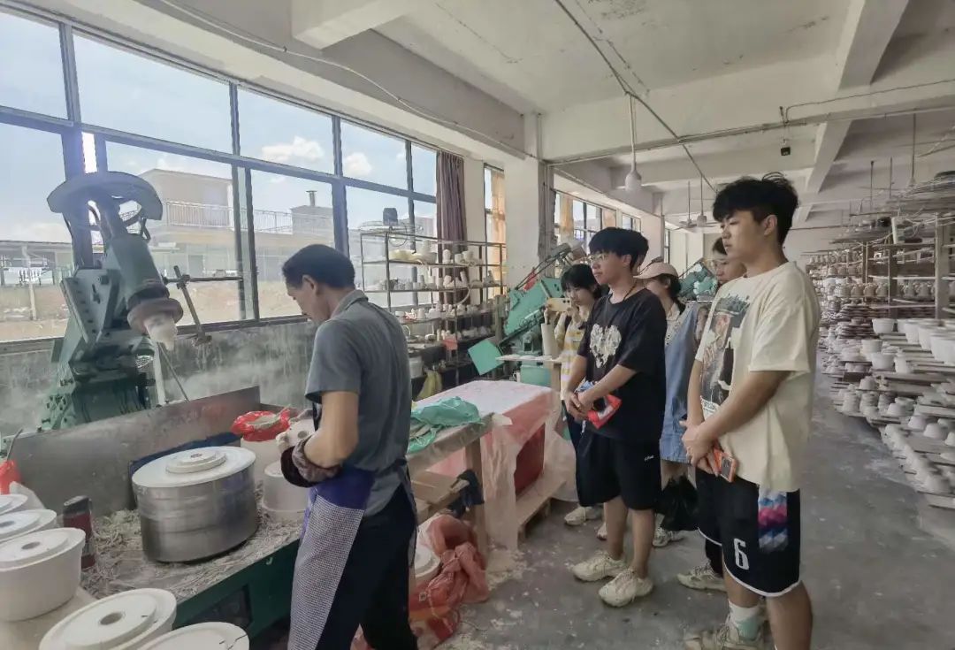 实践队在德化嘉茗瓷厂和臻峰陶瓷文创园开展“探古瓷记忆,焕白瓷新姿”活动。瓷厂厂长陈华英热情地带领我们参观瓷厂并详细地为我们讲解陶瓷从胚体成为精美瓷器的每一道工序,而这每一道工序都在昭示着陶瓷产业的生机勃勃。随后实践队来到臻峰陶瓷文创园,参与到陶瓷的制作当中,实践队队员们在体验陶瓷制作的传统技艺后,深切领会到陶瓷文化的独特魅力。
