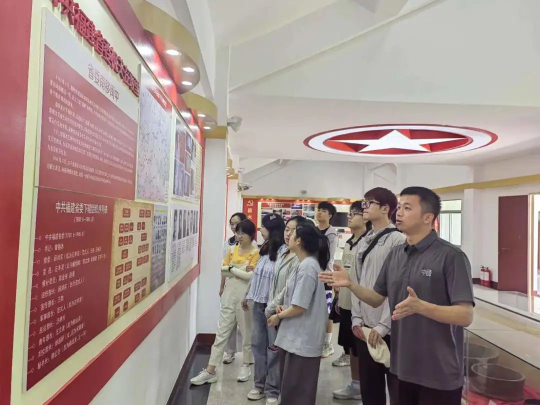 在蔡伟明书记的指引下,实践队前往福建省委旧址参观学习。实践队踏过陈旧的大门,几个玻璃柜台浮现眼前,凑近观看,里面摆放着红军使用过的锅碗枪炮等生活作战用品,即使上面早已布满层层 锈迹,也能够将参观者拉进历史的回忆中。参观后,陈登毅老师分享了自己党史学习的心得,强调广大青年学子应该主动学习百年党史,从百年党史中汲取智慧和力量,升华为学习动力和爱国行动。