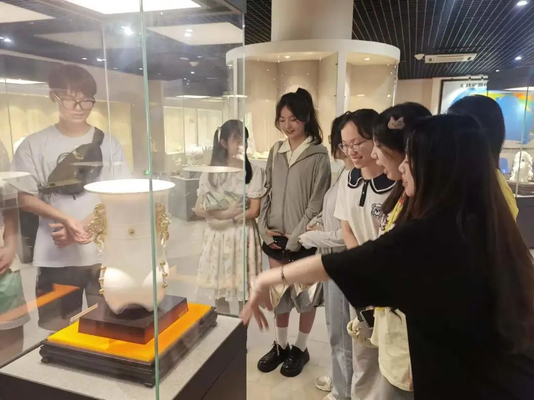 实践队前往德化陶瓷博物馆。了解德化陶瓷始于宋代,长久繁荣,如今已成为德化最自信的招牌。馆内各式各样的精美瓷像,让队员们驻足感慨,赞不绝口,感悟中华优秀传统文化是中华民族的文化根脉。队员们纷纷表示:一定当好传统文化的守护者和传播者,这是每个中国人在新时代的神圣使命。