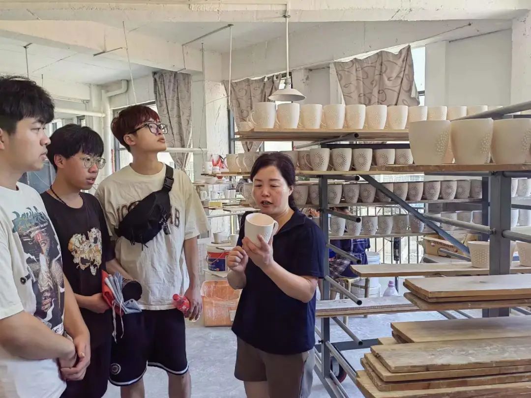 (厂长陈华英为实践队介绍陶瓷制作流程)