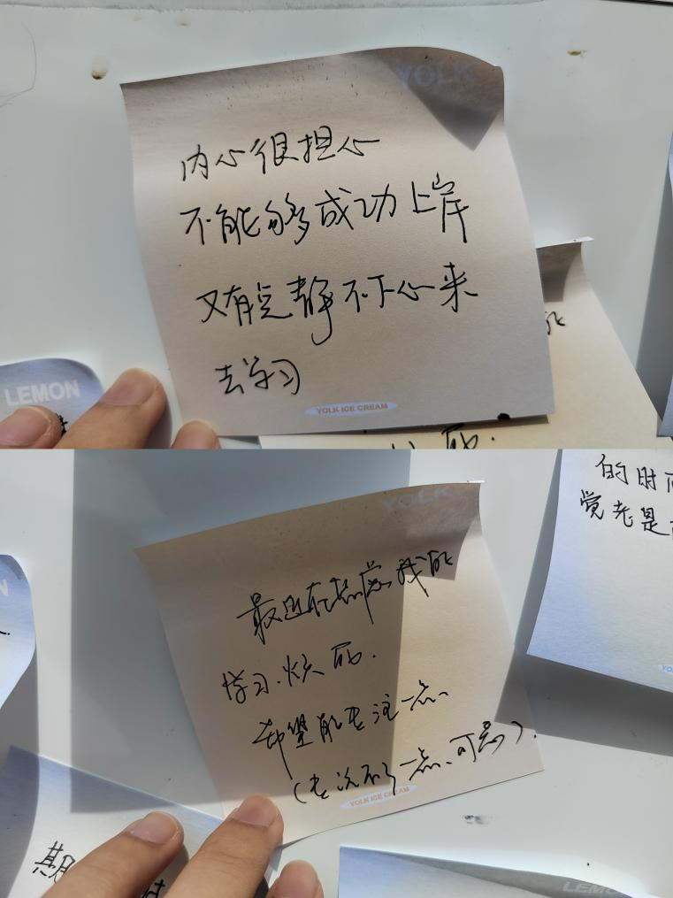 活动以缓解同学们可能潜在的新学期焦躁不安的情绪为目的,鼓励在场的同学们将内心的想法和情绪表达出来,引导员工从面对生活的不满中感悟自己对现实生活的美好期待,打破消极认知,构建积极认知,体验生命巨大的能量。