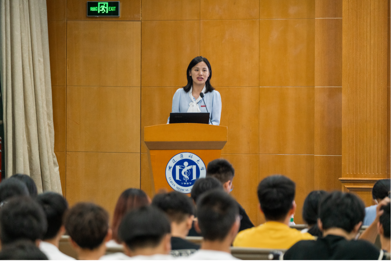 教师代表曾峥老师,与2023级新生分享了她对大学的想法与认知,她希望传授给大家的不仅是医学的专业知识更是“勤奋、严谨、求实、创新”的优秀品质,还是对生命的感知力和同理心。并提出三点建议:第一,“身体要棒”,保持锻炼的强度;第二,“阅读要勤”,拓宽知识的广度;第三,“内心要暖”,保持医者的温度。