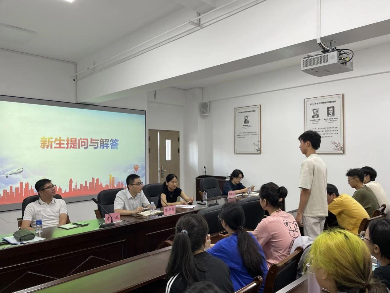 随后,老师和同学们展开深入交流。同学们就专业培养体系、专业课程设置、考研升学难度、职业选择等方面提出问题,老师们对问题耐心回应,解答同学疑惑,同学们收获良多。