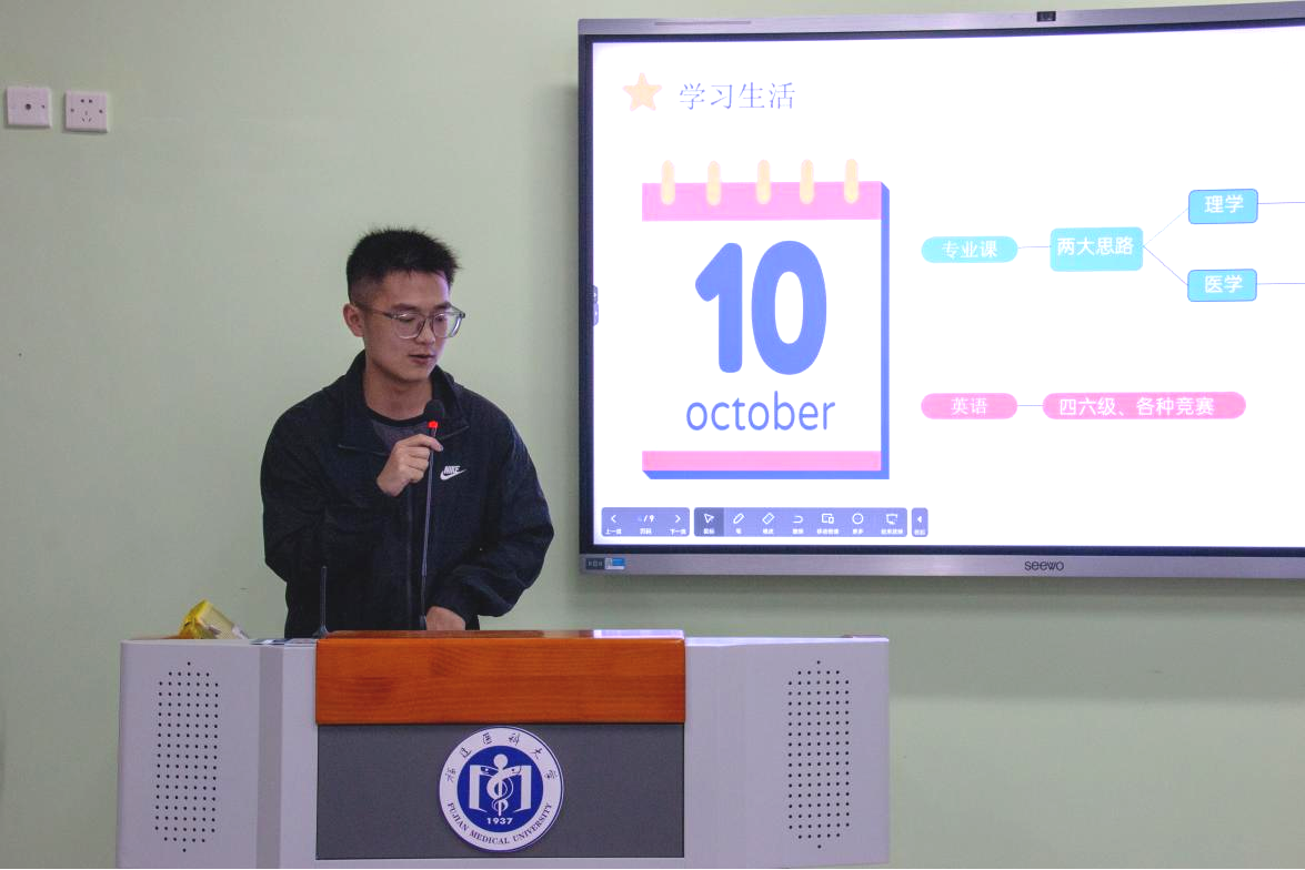 郭涵敬建议同学们应从理学和医学两个角度了解本专业,加强逻辑思维建立,深入学习课本内容;另外他还分享了平衡专业学习和社团活动的方法以及合理安排课余时间的宝贵经验,鼓励同学们应全面高素质发展。