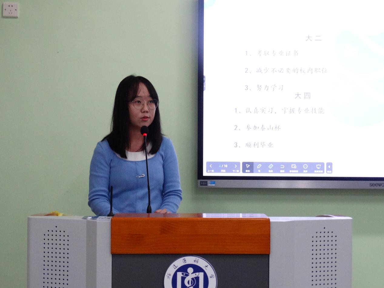 李烨重点介绍了如何进行老员工涯规划,建议同学们了解自身兴趣、确定发展方向、学会搜集信息、勇于大胆尝试;同时,她从承认客观差距、学会高效学习方法、探求自身学习体系三个方面,鼓励同学们认真学习,形成适合自己的学习模式。
