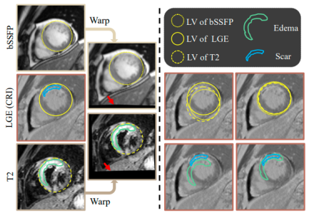 该工作提出了一个全自动的多序列心脏MR图像心肌病灶分割框架,其通过联合计算模型将多序列的病灶信息对齐到统一公共空间,实现高效地心肌病灶量化。