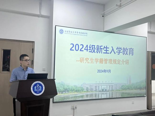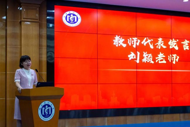 教师代表刘颖老师鼓励全体新生,“学如逆水行舟,不进则退”,要勇于探索未知,敢于质疑,勤于实践。希望每位同学都能珍惜在威廉希尔体育的学习时光,不负韶华,勇攀高峰,师生携手并进,共同开创医学影像更加辉煌的未来。