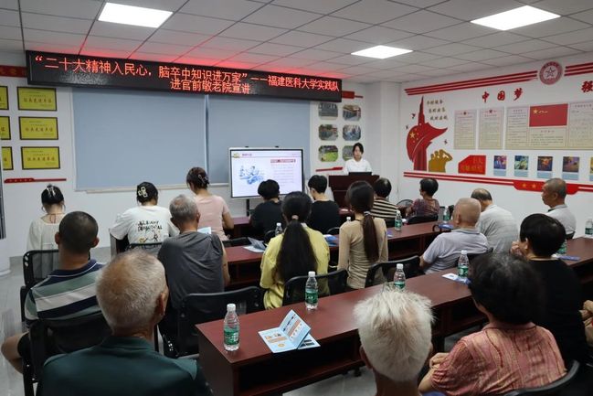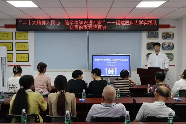 为了贯彻落实推动重大疾病早期预防和治疗的号召,助力“健康福建”战略落地生根,实践队于7月13日在福建晋江官前社区敬老院开展了脑卒中健康科普宣讲与党的二十大精神宣讲活动。