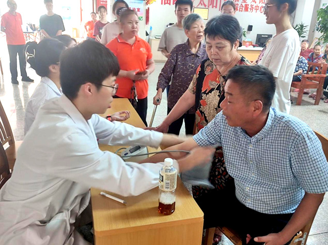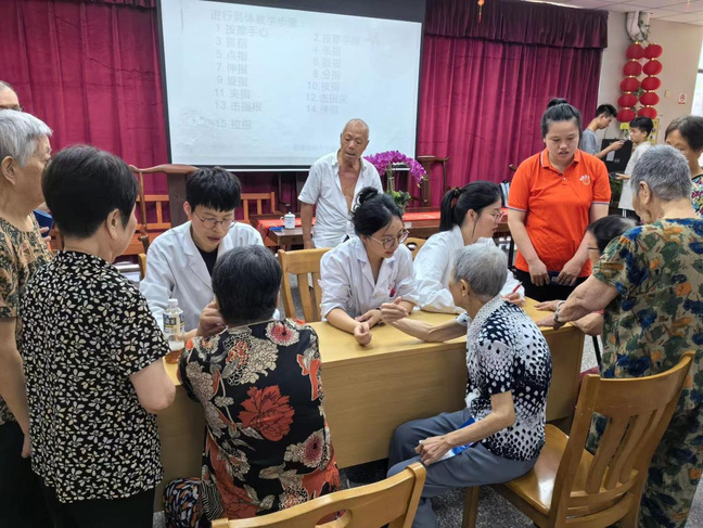 义诊活动现场,居民们携带病例前来问诊,队员们则根据居民的需求提出针对性的治疗方案和预防方法;同时,实践队员们也与养老院的老人们进行交流,普及医疗养生知识。另外,实践队员以脑卒中的成因、辨别、预防和治疗方法等为主要内容展开脑卒中健康科普宣讲,通过对脑卒中相关知识的传播,提高了听众们的预防意识,引导其养成良好生活习惯,预防脑卒中疾病的形成。