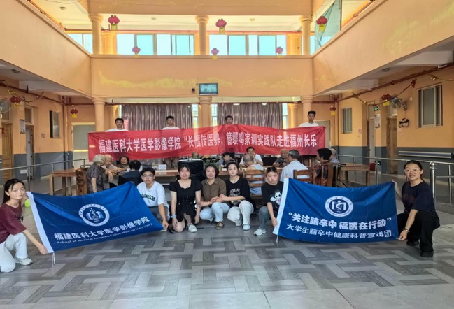 7月14至15日,实践队伍前往福州市长乐区文岭镇敬老院,开展脑卒中健康科普宣讲及老年人智能手机使用方法科普活动。