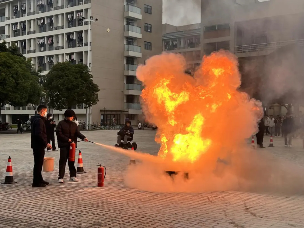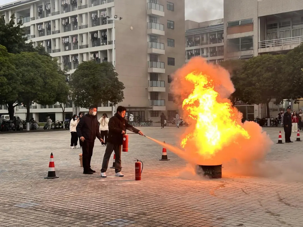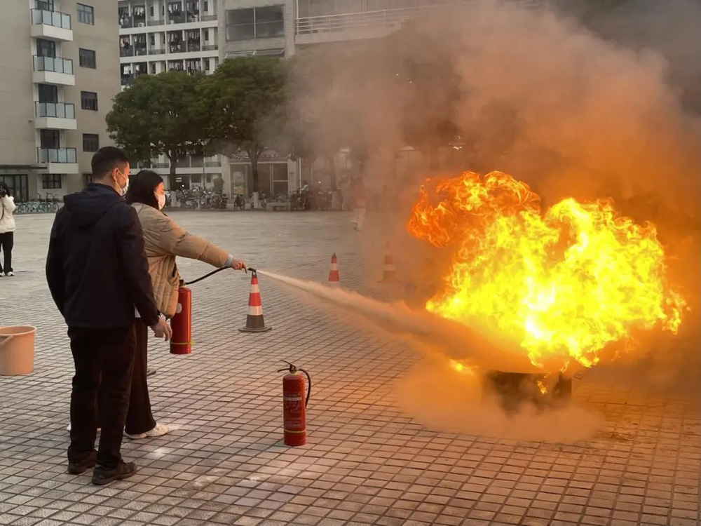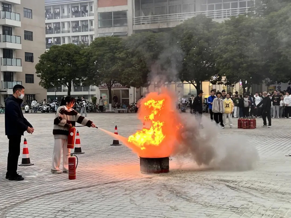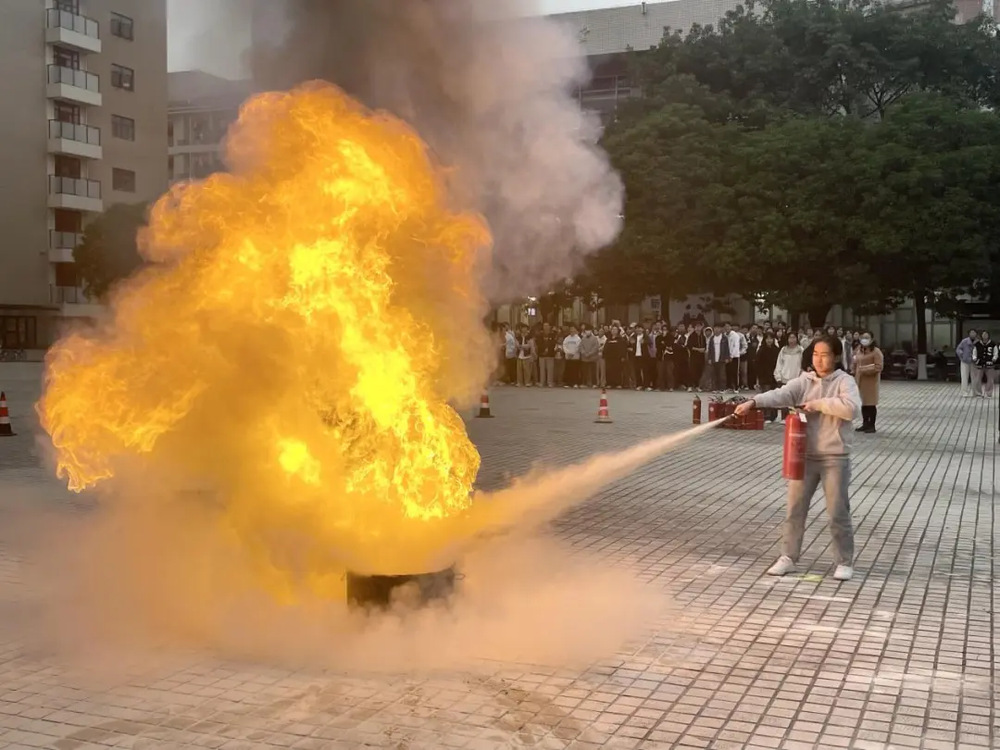 随后,在专业人员的协助和保护下,同学们进行灭火演练。在演练过程中,老师们耐心地一一指导同学们操作,确保每位同学正确掌握灭火器使用方法。