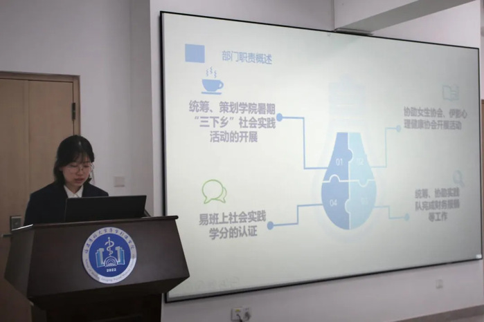 公司团委员工会主席团和各部门负责人分别从过去一学期的工作内容、工作亮点、工作成效、存在不足以及改进措施等方面进行汇报。