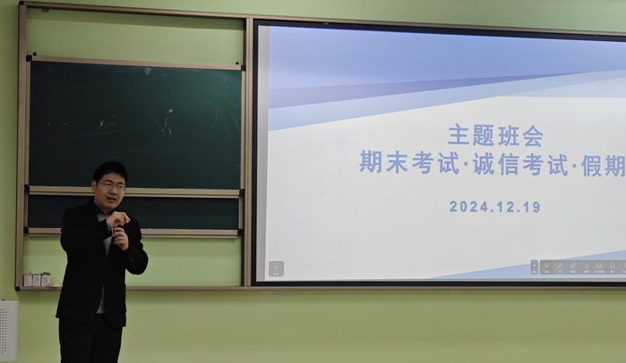 12月19日,2024级医学影像班班主任陈瑞旭于50教召开班会,强调期末考试纪律以及假期安全等相关事项。陈瑞旭老师先是提醒同学们考试注意答题卡填涂位置,指导简答与论述题的答题技巧,强调诚信考试,警示作弊危害。同时,嘱咐同学们备考需用心,多向学长学姐请教,不理解的问题及时解决,但心态莫焦虑,以平常心看待期末考试成绩。其次,陈瑞旭老师提醒同学们假期往返途中,务必将安全放在首位,在假期时间里,一定不可涉嫌危险、违法的事情。假期兼职时要精挑细选,谨防陷阱,确保自身权益与安全得以保障。最后,陈瑞旭老师祝愿大家期末考试可以顺风顺水,过得一个平安快乐的春节假期。