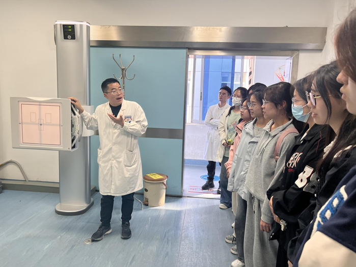 在短暂的座谈会后,陈建炜老师和马宁技师带领同学们前往医院的PET - CT 检查室、CT检查室和磁共振成像(MRI)区域参观,了解各类设备具体操作原理以及过程,观察造影剂呈现图像的特点。