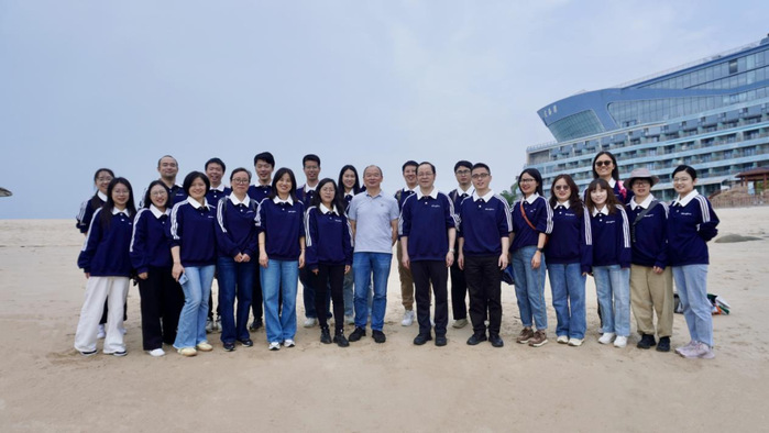 教职工们在海滨漫步,享受海风的吹拂和海浪的拍打。定海湾的沙滩细腻,海水清澈,是一个放松身心、交流工作、学习和生活的好去处。