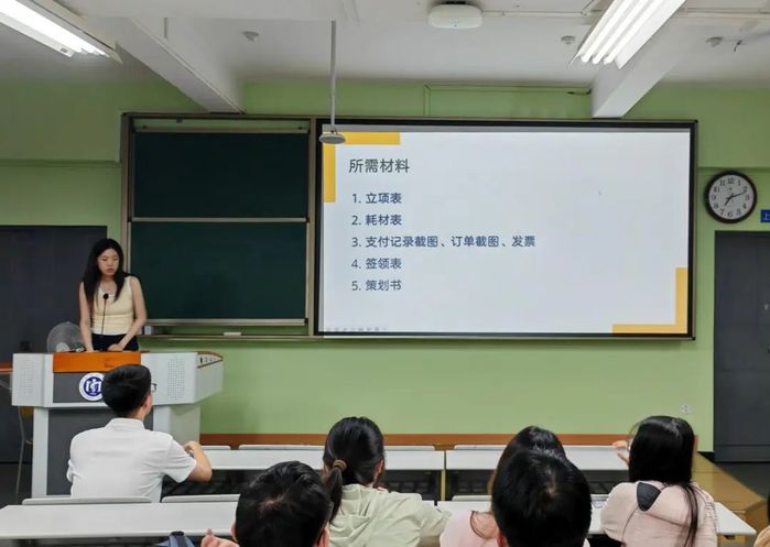 员工会办公室部长林昳璇同学为实践队员们系统讲解了经费报销的规范流程和注意事项,为各实践团队提供了清晰的报销指导,确保三下乡工作的顺利进行。