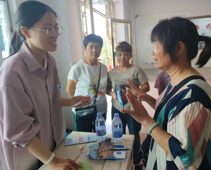 为贯彻“守护健康、普及知识”的健康宗旨,用实际行动传递医者温情,实践队来到永春县五里街社区,分组展开行动,一组在五里街卫生服务中心开展义诊服务,另一组走进社区发放脑卒中知识手册和宣传扇。面对前来咨询的群众,队员们耐心细致地为大家测量血压,详细询问日常饮食习惯和身体状况,并结合测量数据给出个性化的健康建议。