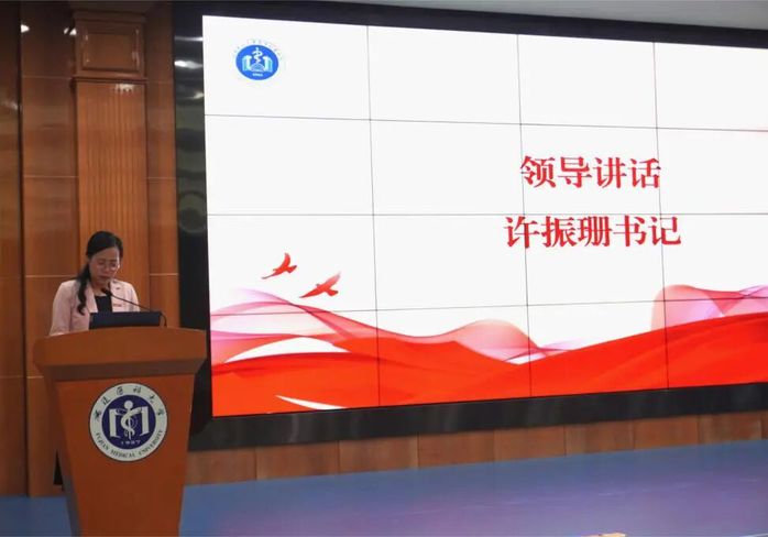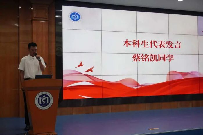 本科新生代表蔡铭凯同学表达了对成为“影像人”的自豪与期待,号召同学们尽快适应大学节奏,珍惜学习机会,夯实专业基础,保持好奇探索,立志成为有温度、有担当的医学影像专业人才。