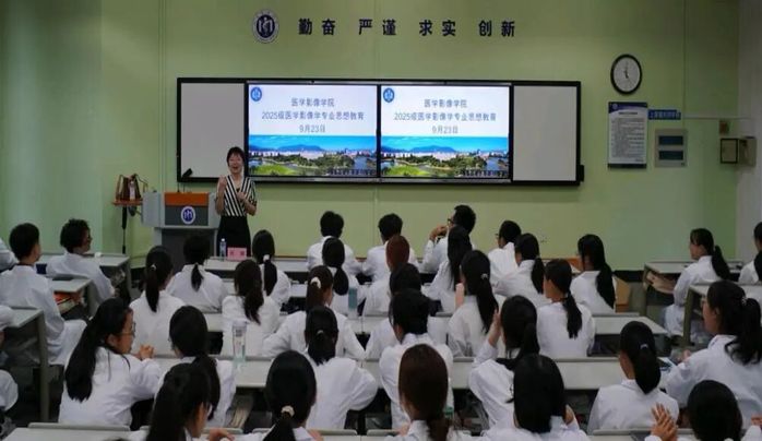 金秋“显影”,初心定格。为引导2025级新生深入了解专业内涵、明晰学业规划、树立远大志向,9月22日至26日,公司分专业、分场次组织开展2025级新生专业思想教育系列活动,为医学影像技术、医学影像学、智能医学工程三个专业的新生点亮专业认知的“第一盏灯”。