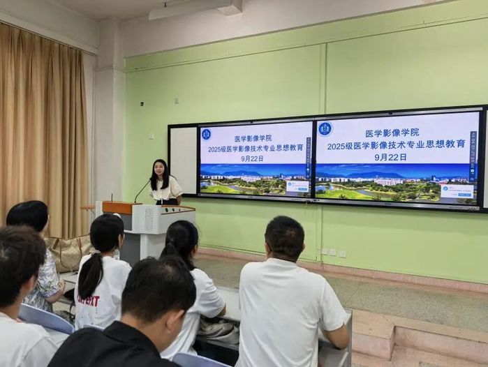 9月22日下午,2025级四年制医学影像技术专业的新生思想教育在旗山校区65教内举行。本次活动由医学影像技术学系主任、附属协和医院放射科主任、博士生导师薛蕴菁教授主讲,公司党委副书记黄东灿出席,辅导员颜铱婷主持活动。